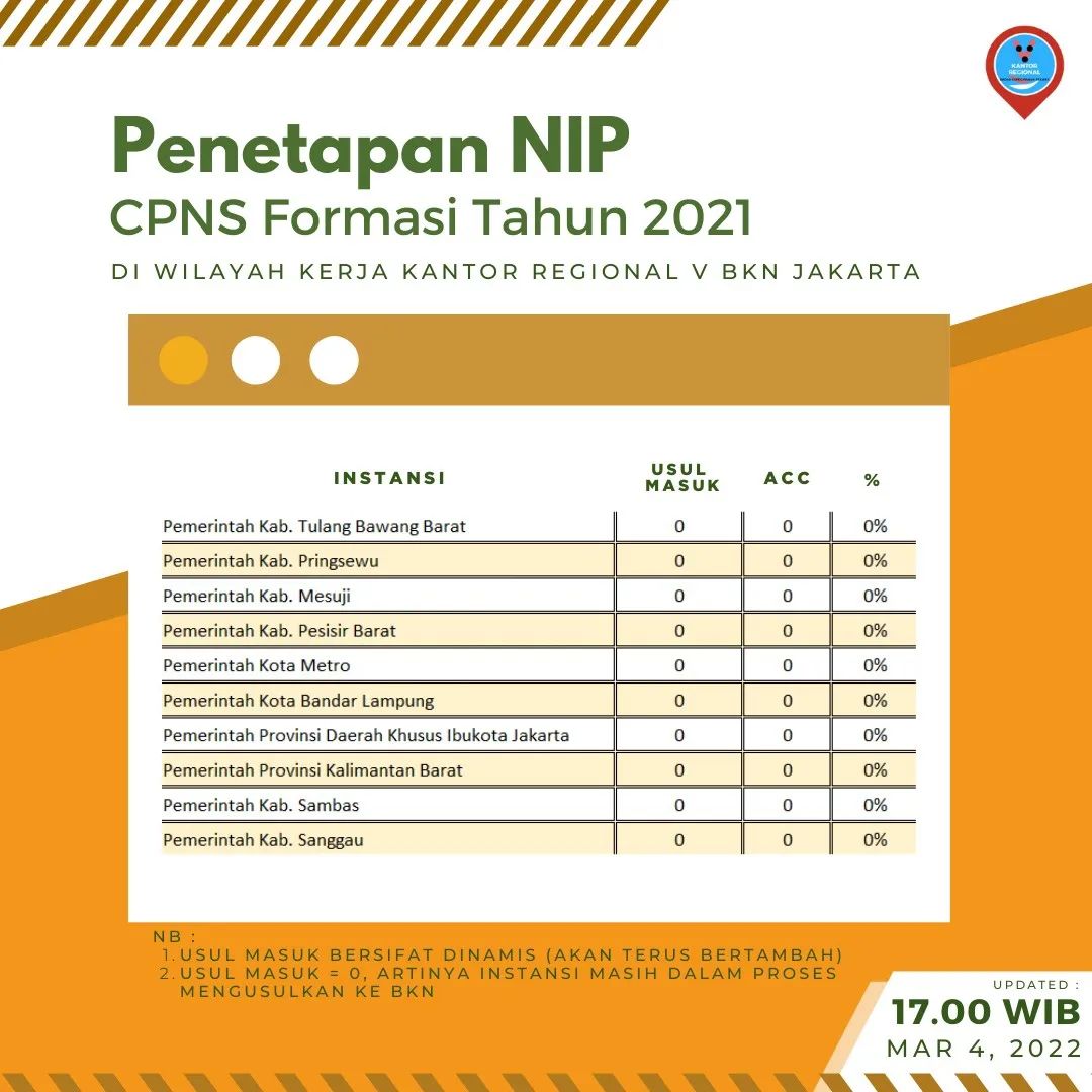 Berikut progres sementara penetapan NIP CPNS di wilker Kanreg V BKN