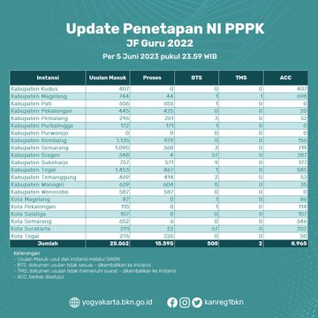 Update Progres Penetapan NI PPPK Guru Kanreg 5 BKN Per 5 Juni 2023