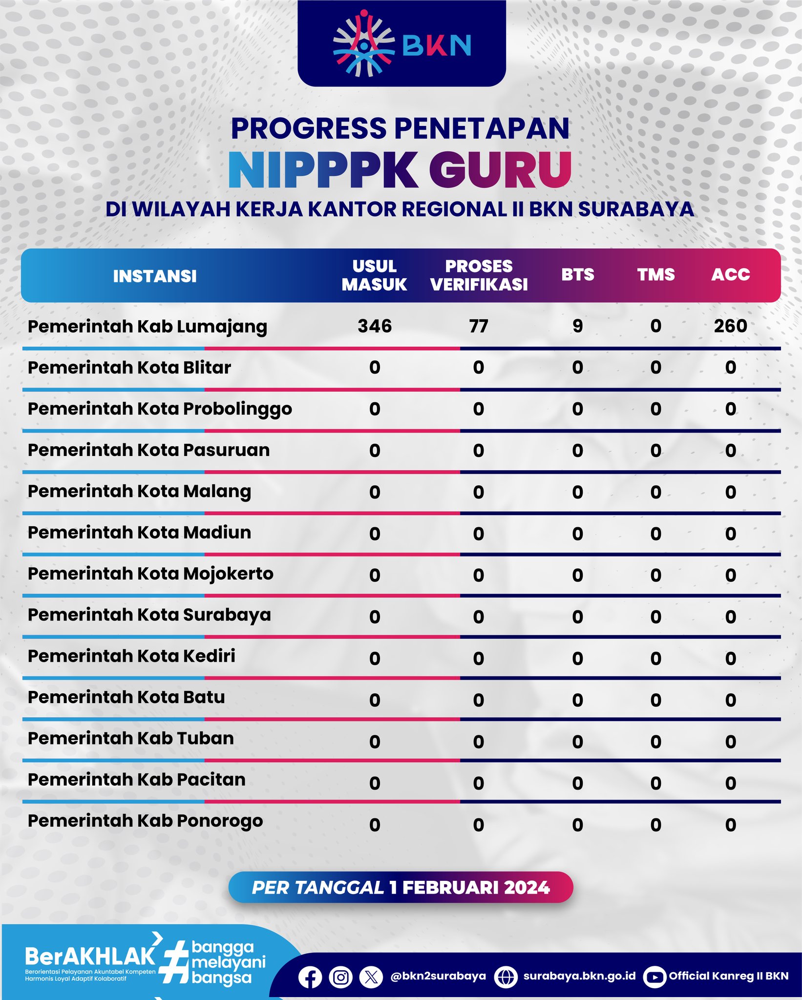 Untuk instansi yang masih kosong artinya kami sedang menunggu usul masuk dari instansi. Harap bersabar dan mohon dukungannya #SobatBKN agar progress nya meningkat dengan cepat 😉