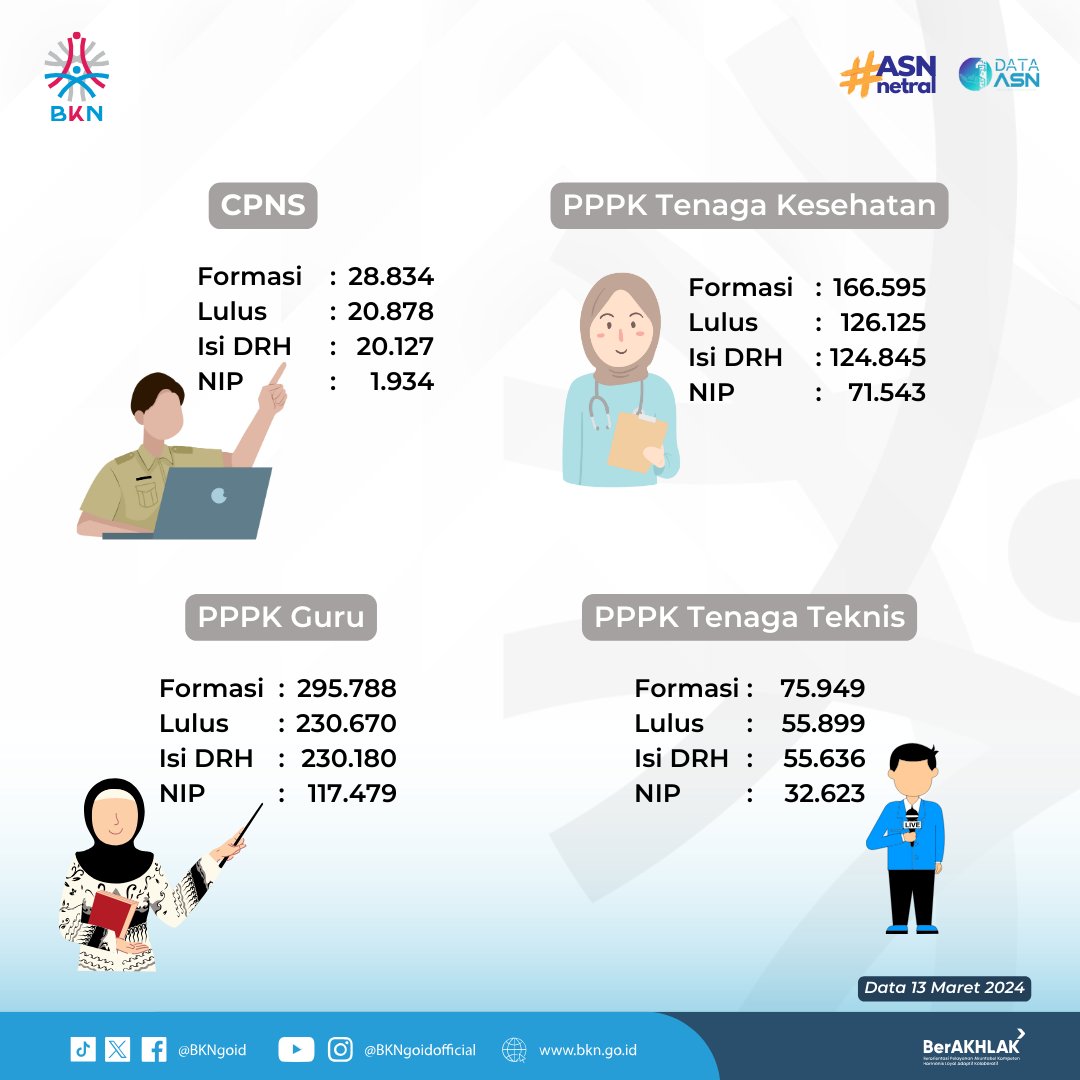 Update Progress Penetapan NIP ASN Tahun 2023 Per 13 Maret 2024 Cek perkembangannya hari ini #SobatBKN dan detailnya bisa kalian lihat pada link yang tertera! #SeleksiCASN2023 #SatuDataASN #ASNNetralhttps://s.id/24NIPPPKdanNIPSalam Literasi ..yang sedang menunggu progres penetapan NIP Email ThisBlogThis!Share to XShare to Facebook