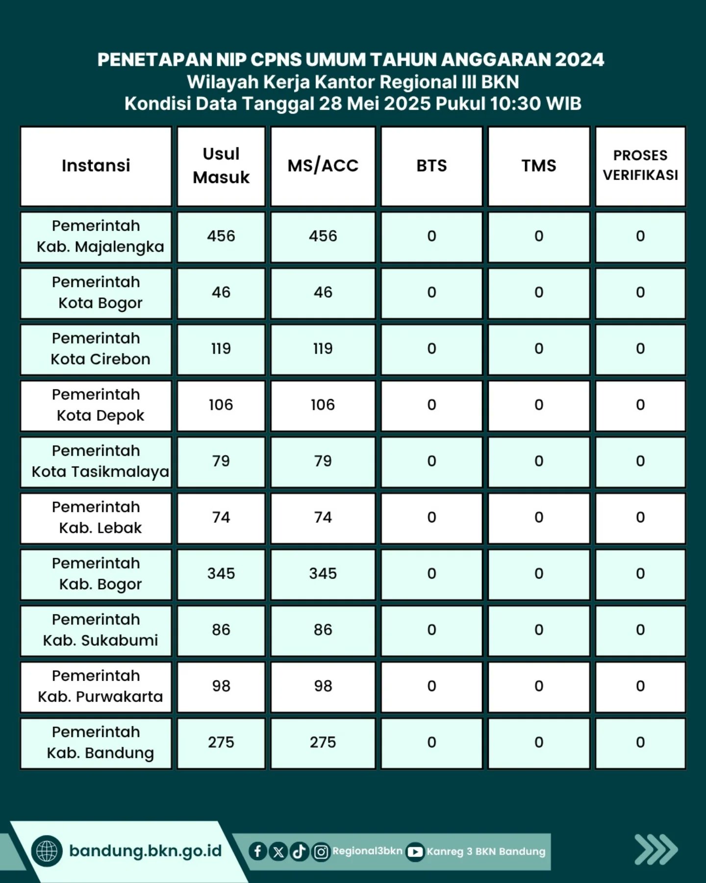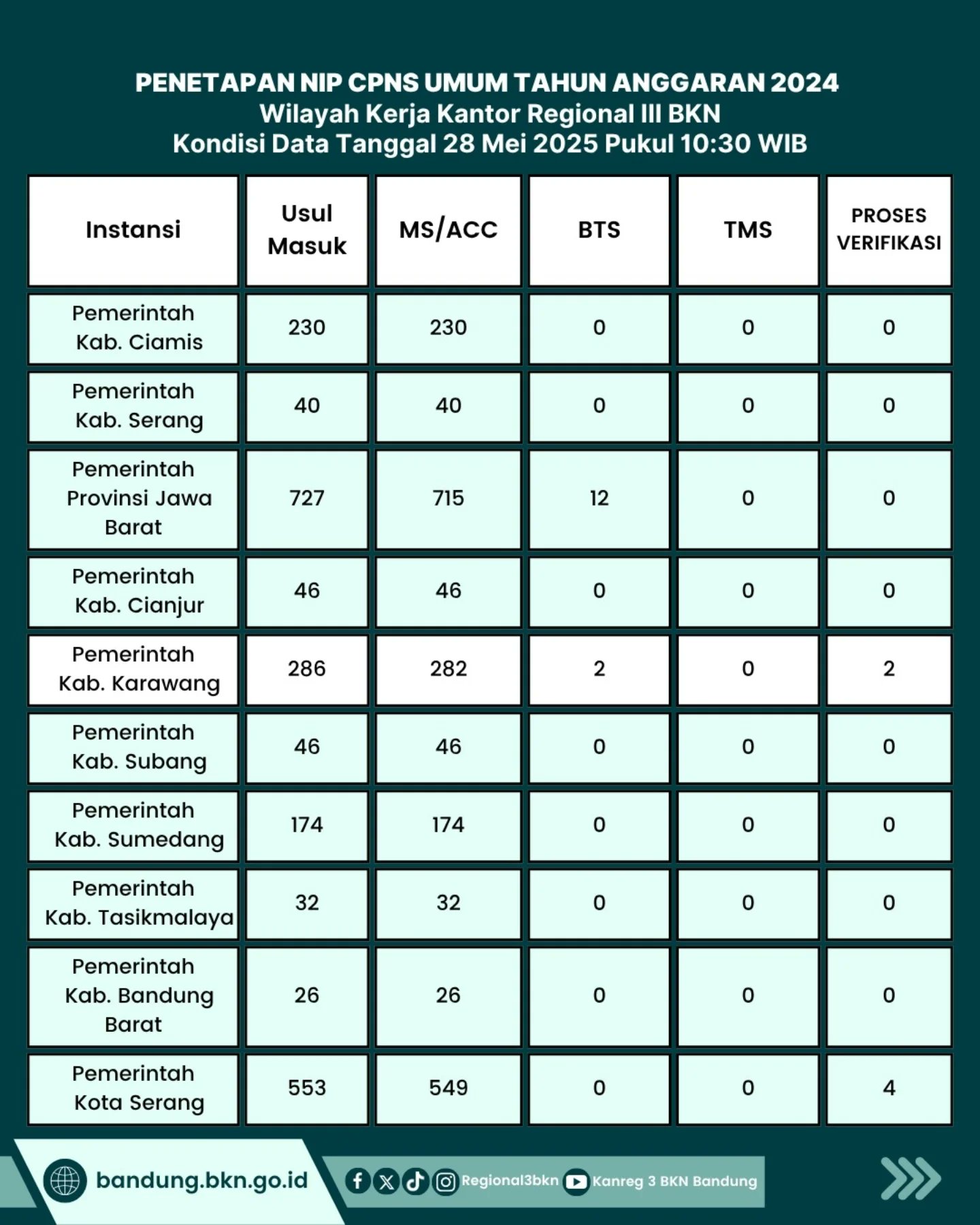 📊 Update Penetapan NIP CPNS di Wilayah Kanreg III BKN! Progres terus berjalan, tapi minggu ini ada sedikit penurunan jumlah NIP yang ditetapkan. Kenapa? 🤔 Karena sejumlah usulan masih dalam proses perbaikan data dari instansi pengusul. ✅🔄 🗂️