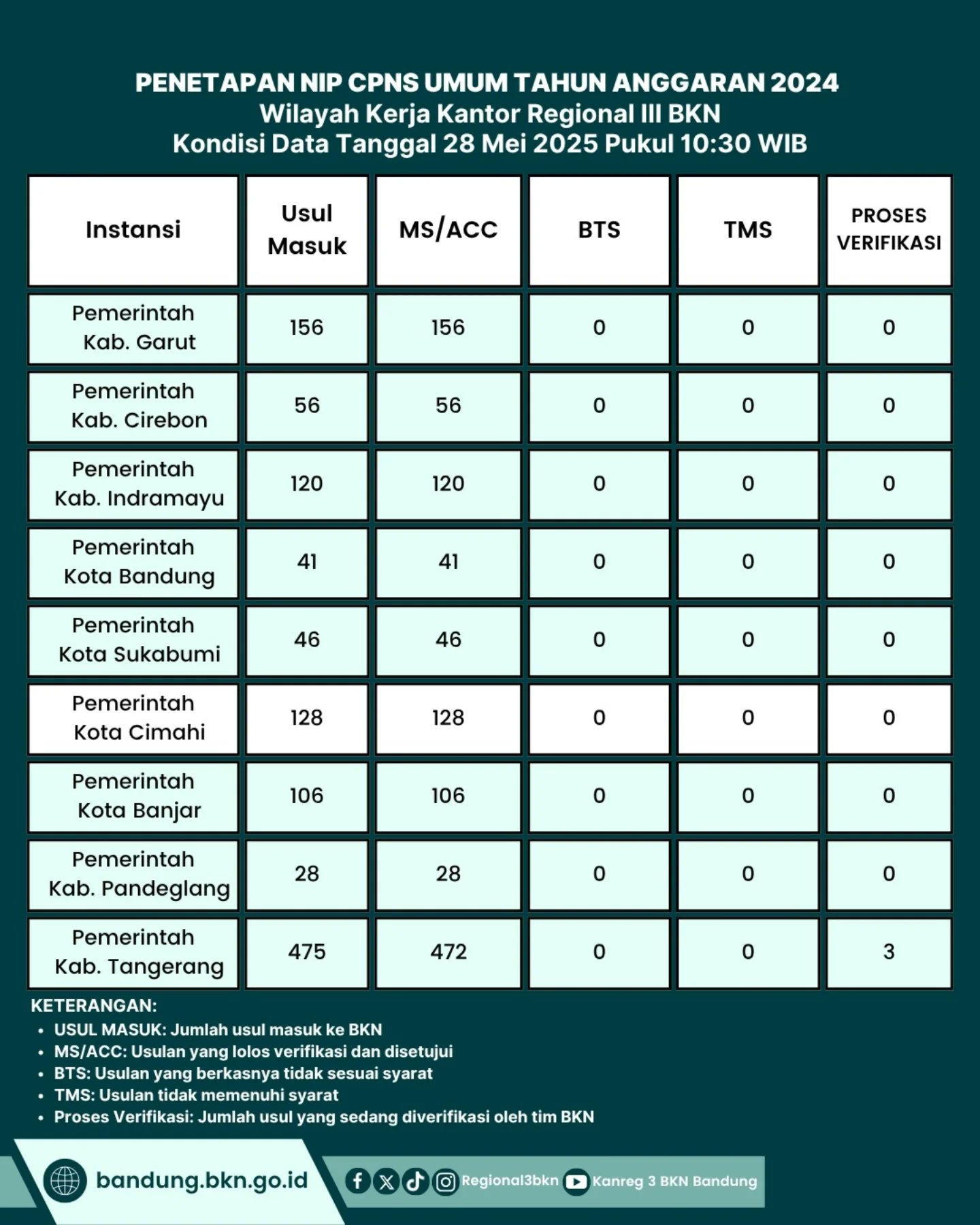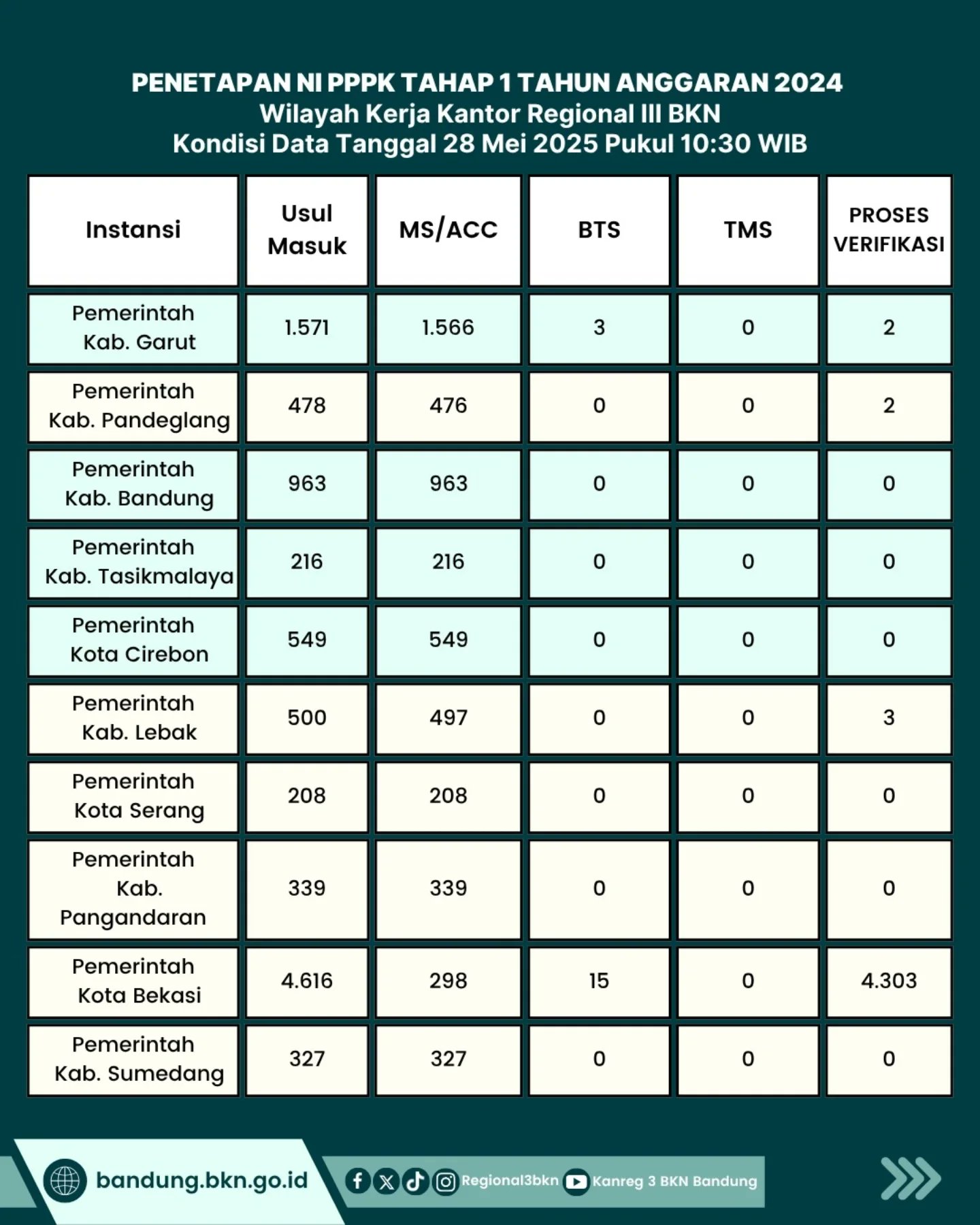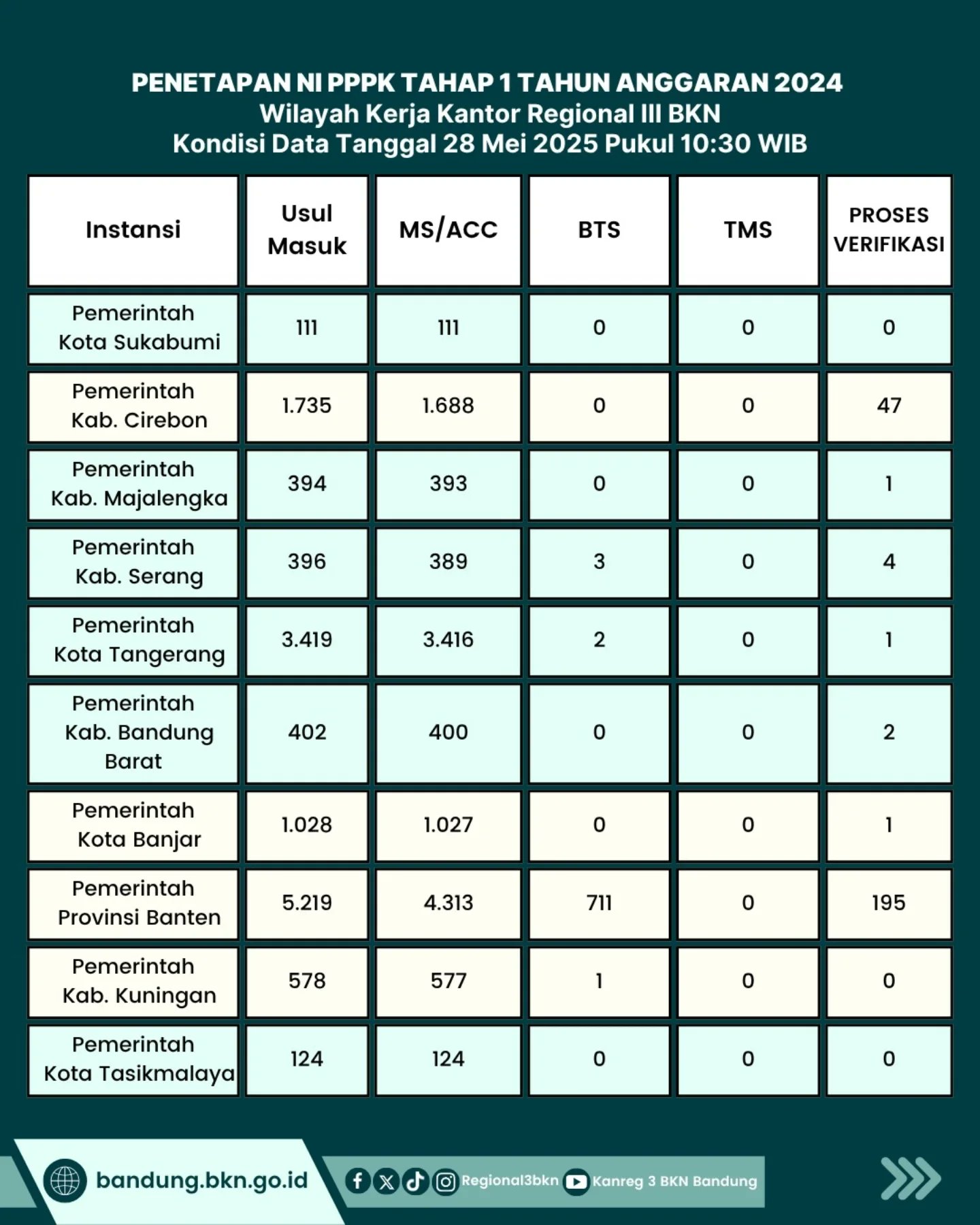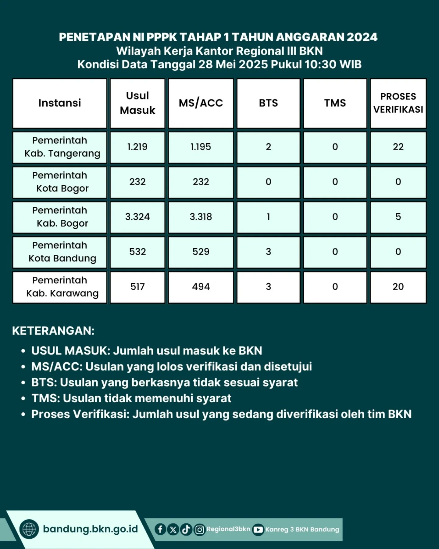 📌 Progres Penetapan NIP PPPK Wilayah Kerja Kanreg III BKNAda dua instansi mengajukan usulan: