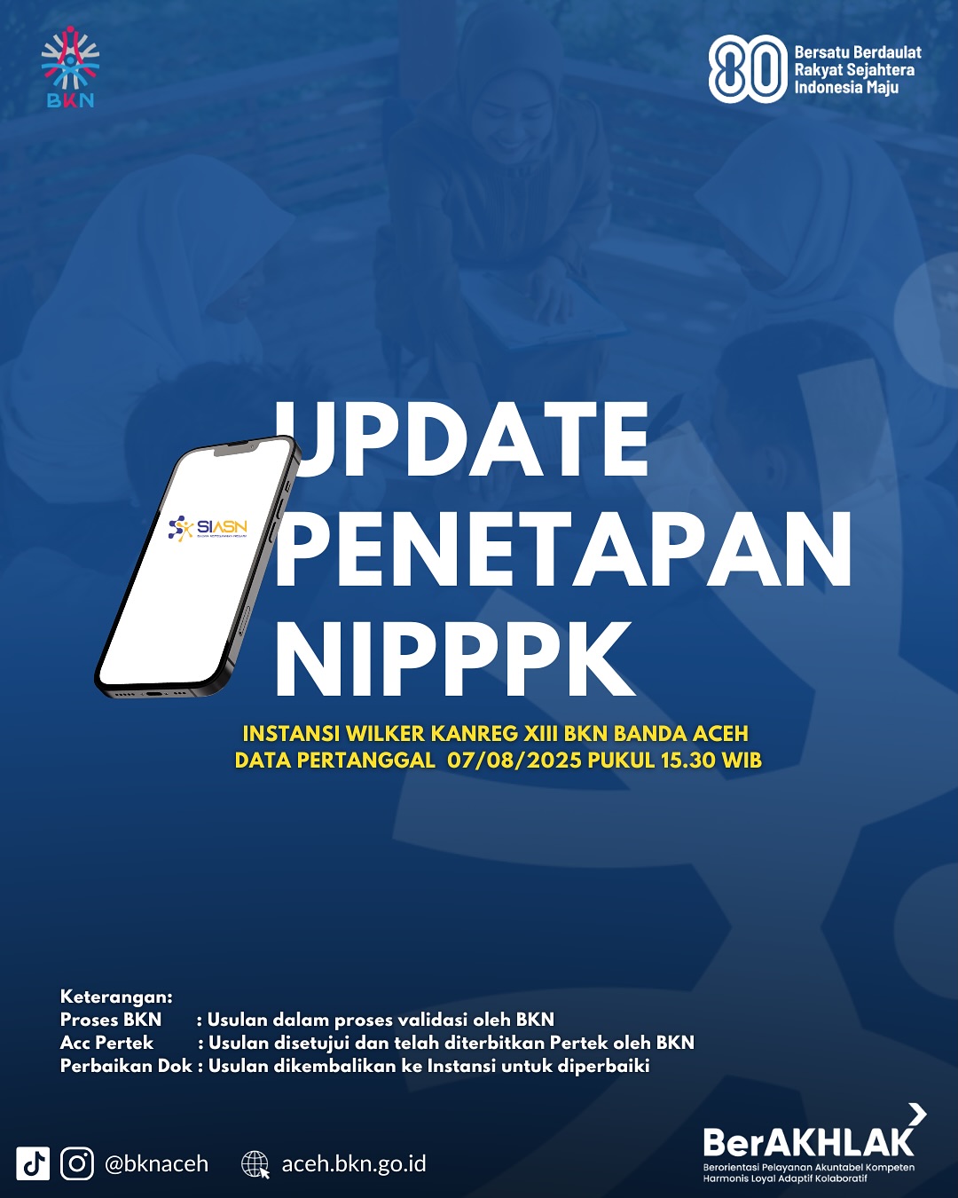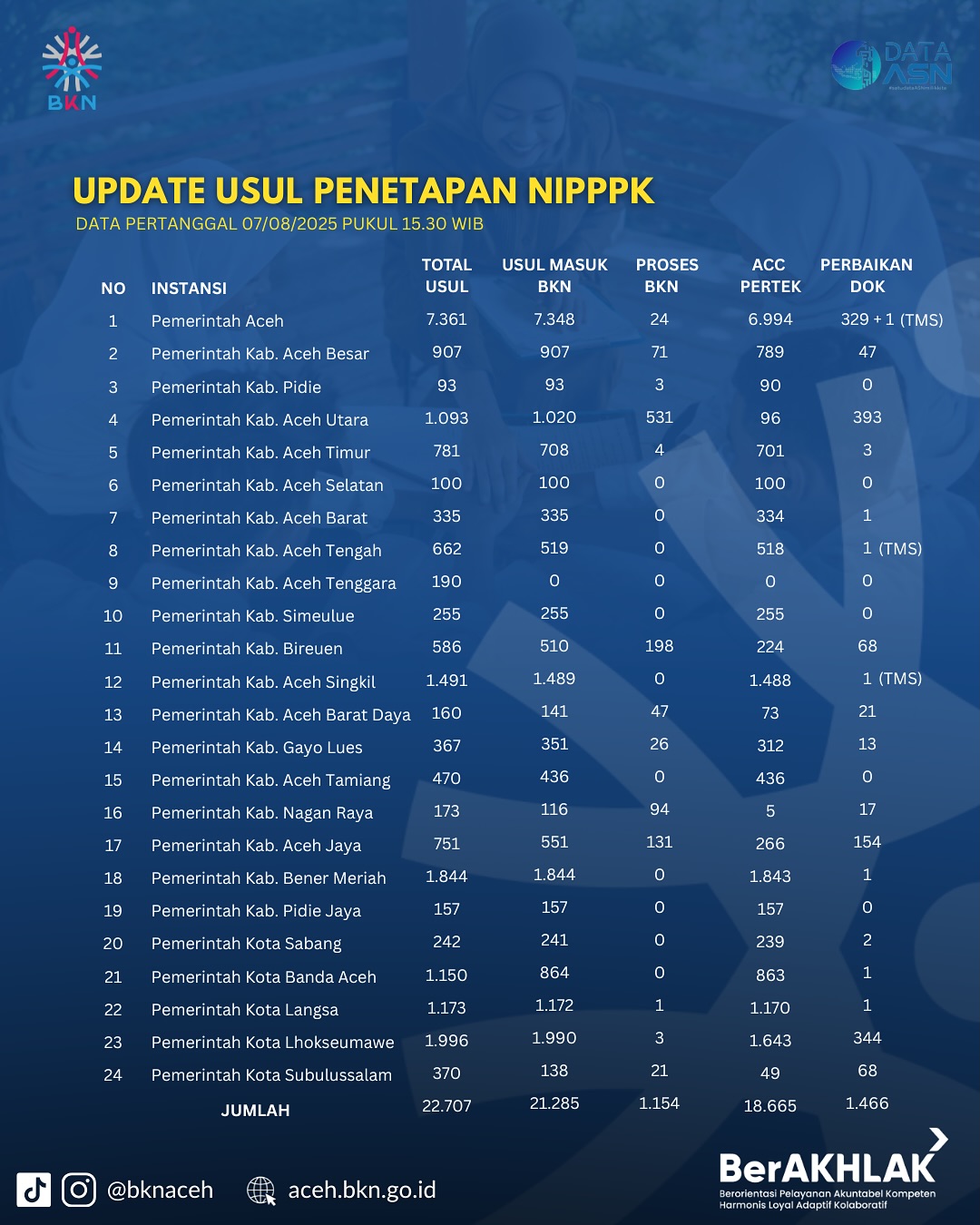 Berikut mimin sampaikan update data TAP NIPPPK per 7 Agustus 2025 pukul 15.30 WIB ya Rakan🙌🏻